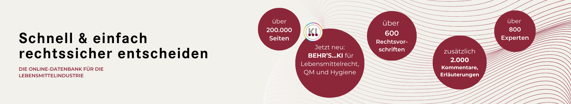 Behr's...Online ist mit über 200.000 Seiten eine der größten Datenbanken für die Lebensmittelindustrie, wenn es um aktuelle Rechtsvorschriften, Urteile, Kommentare, Erläuterungen und Anleitungen geht.